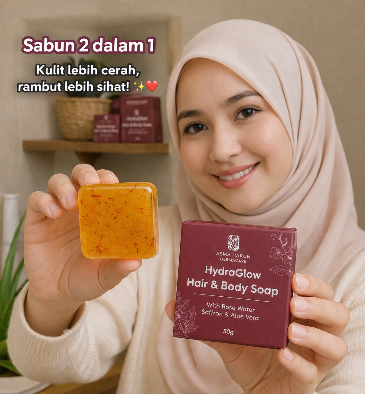 Namun, selepas menggunakan Sabun Herba Penumbuh Rambut Hydraglow Beauty Soap, saya mula melihat pertumbuhan rambut yang ketara di bahagian garis rambut dalam masa 2–3 minggu walaupun penggunaan tidak konsisten. Kini, selepas beberapa bulan, garis rambut saya kelihatan penuh semula. Sabun ini benar-benar membantu saya mendapatkan kembali panjang rambut seperti sebelum rambut saya rosak. Saya sangat bersyukur!”